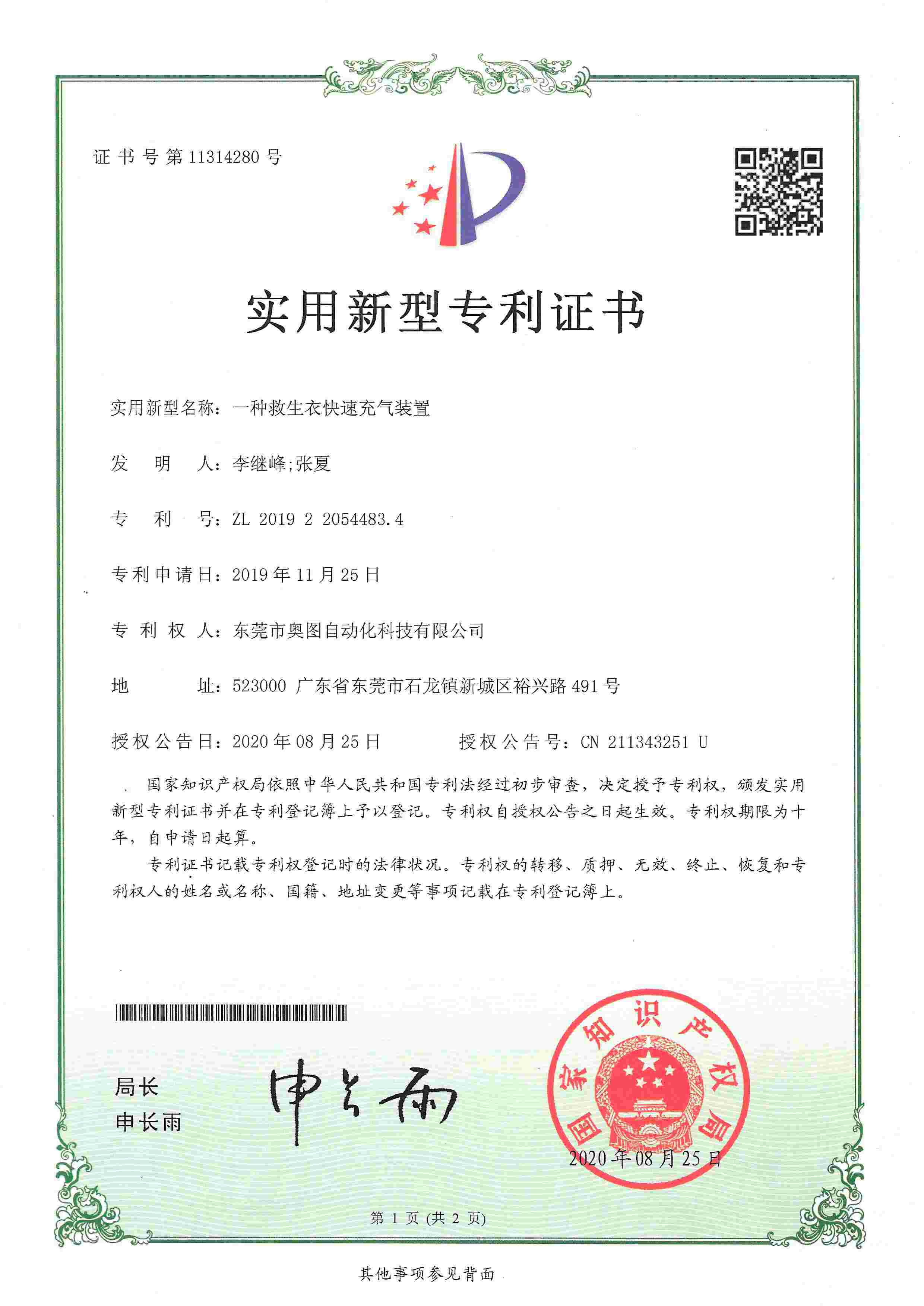 救生衣快速充氣裝置專利